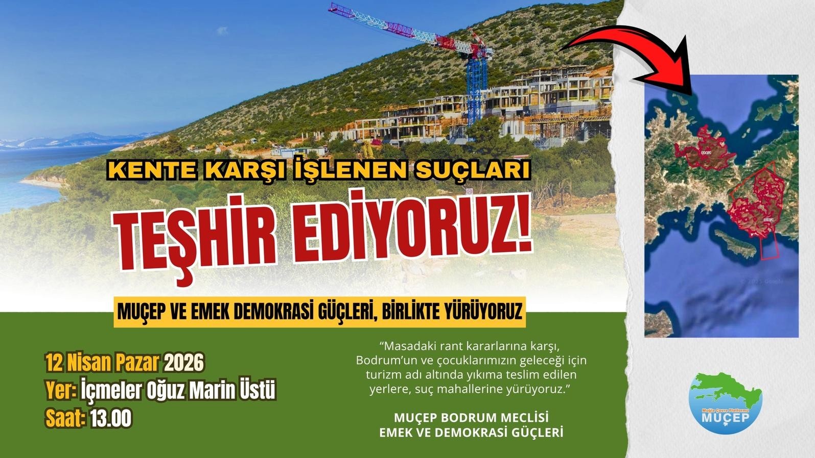 Masadaki rant kararlarına karşı, Bodrum’un ve çocuklarımızın geleceği için, turizm adı altında yıkıma teslim edilen yerlere, suç mahallerine yürüyoruz .